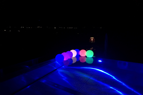Rooftop-Pool am Abend