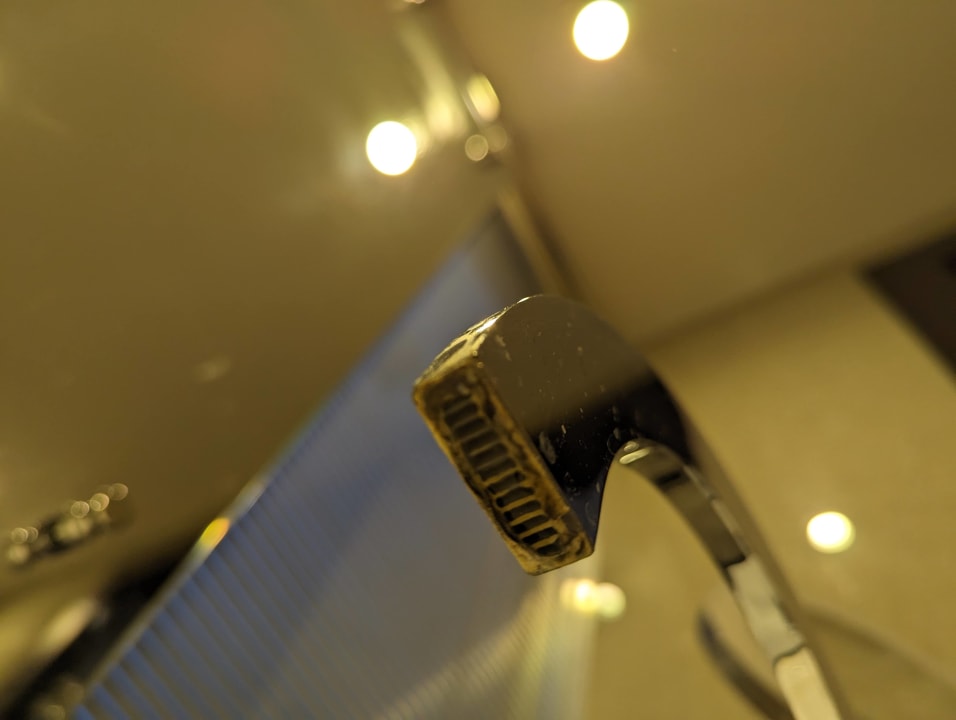 Komplett verkalkter und verschmutzer Wasserhahn im Bad