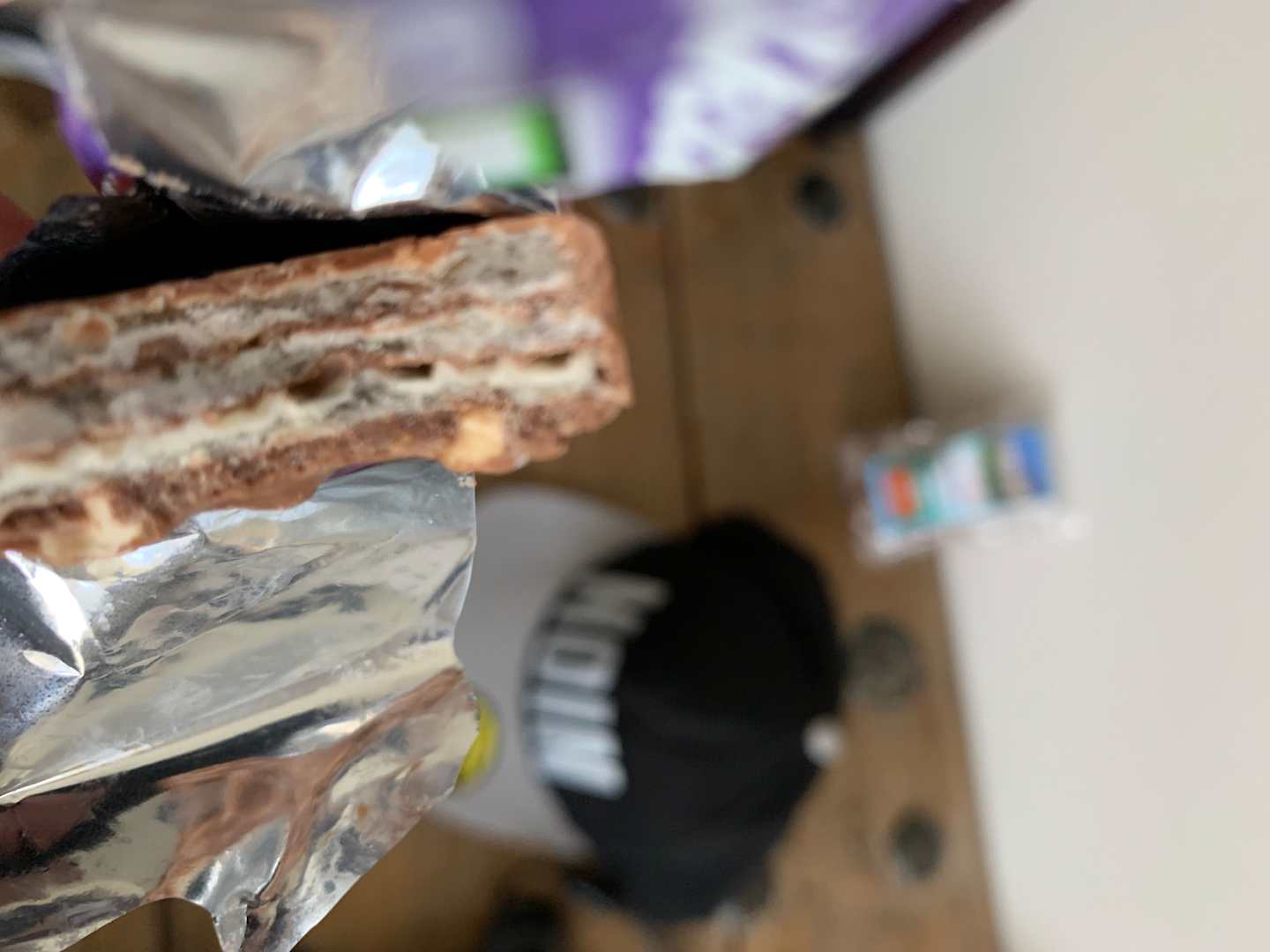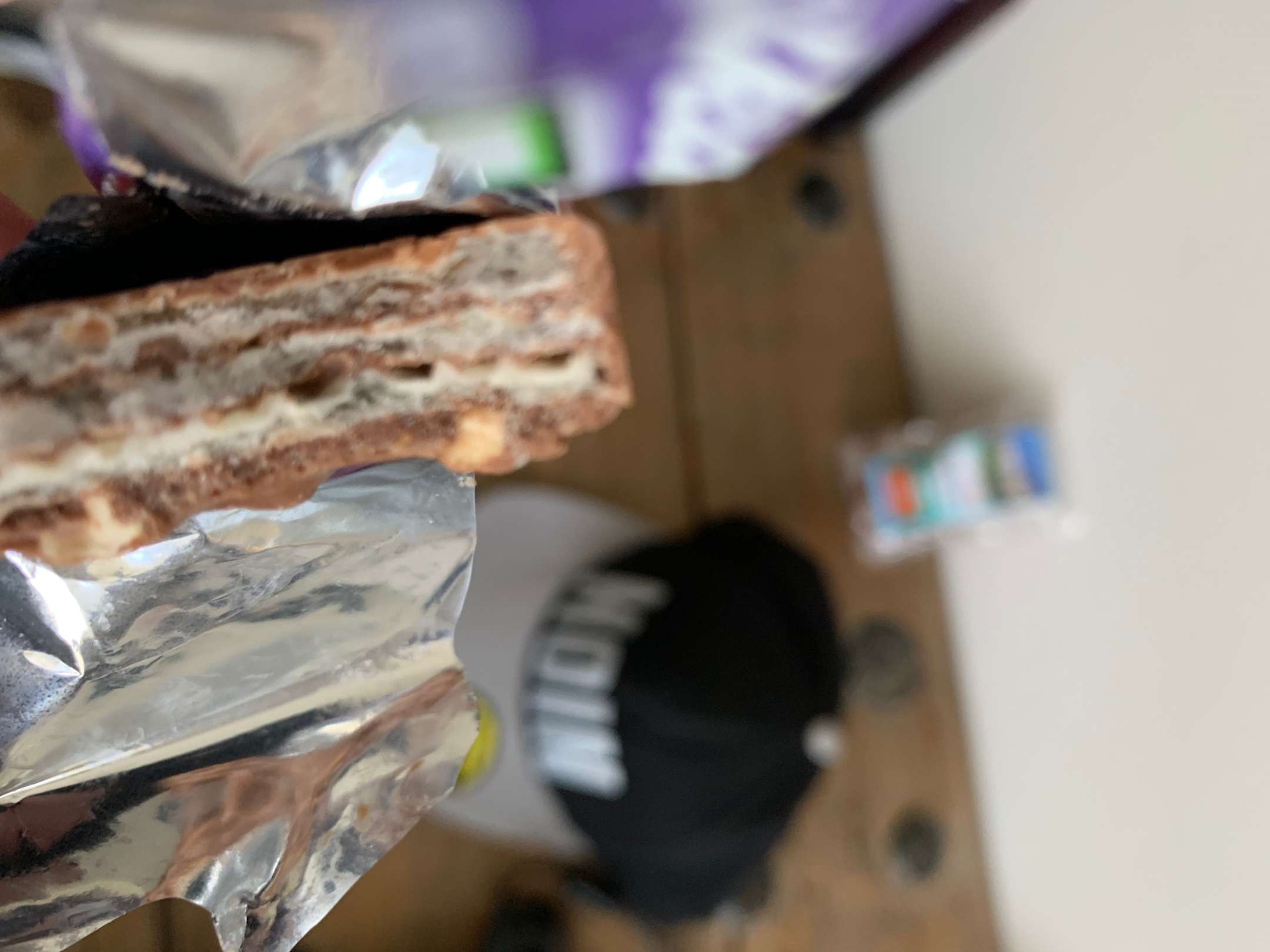 Schimmeliger Nusspli Riegel der im Mai abgelaufen war.