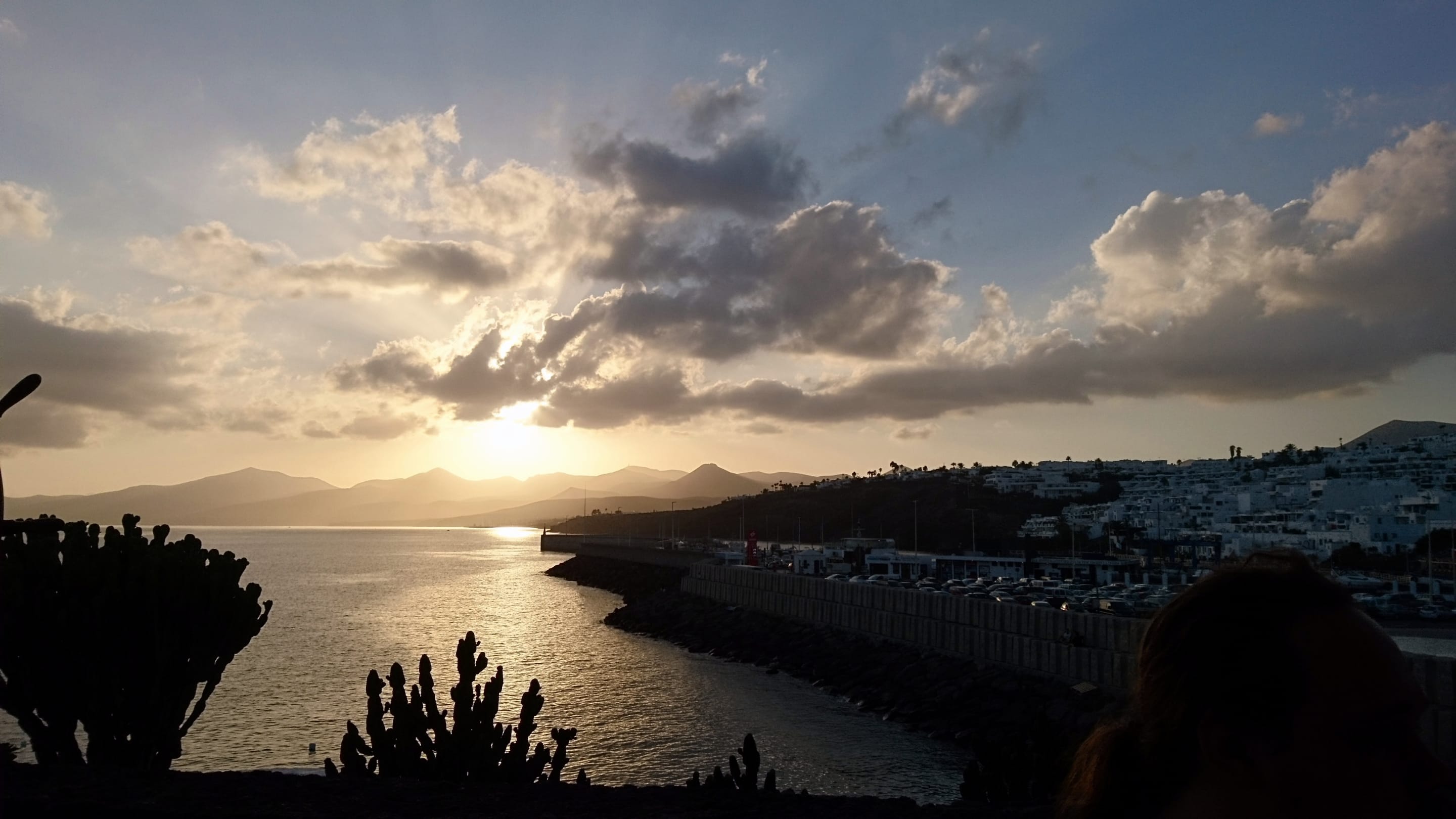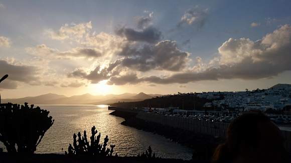Sonnenuntergang auf der Terrasse des Rest. Puerto Bahia am alten Hafen