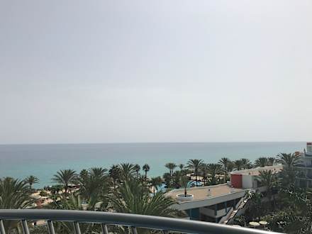 Ausblick vom Zimmer auf die Anlage und das Meer