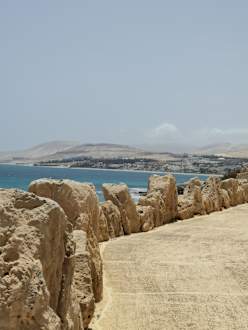 Außenmauer hinten vom Hotel mit Blick auf Costa Calma