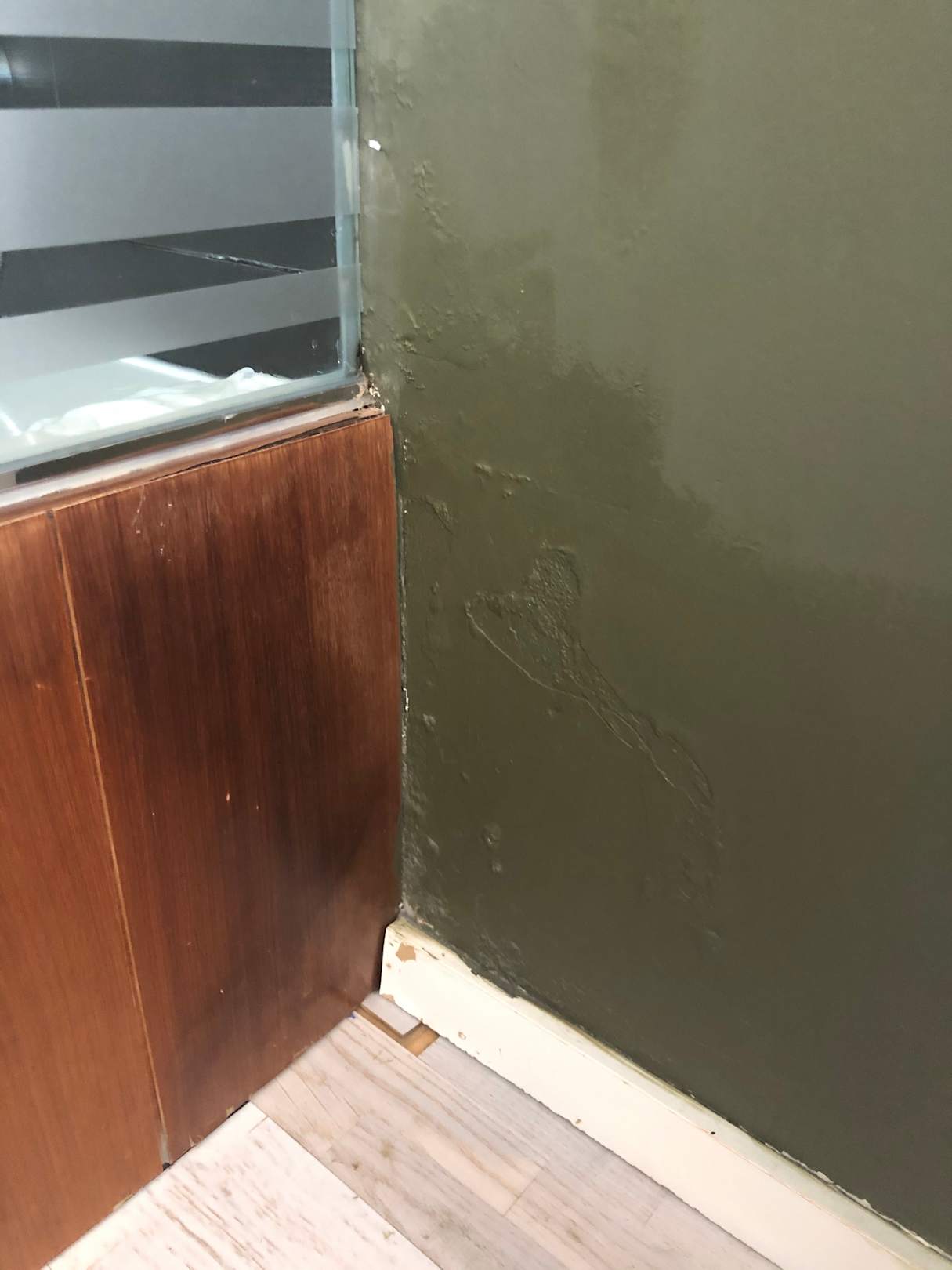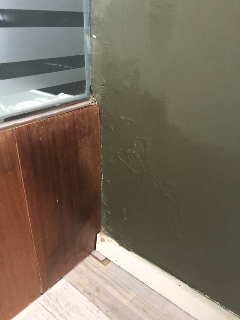 Stüperhafte Reparatur eines Wasserschadens durch die Dusche.