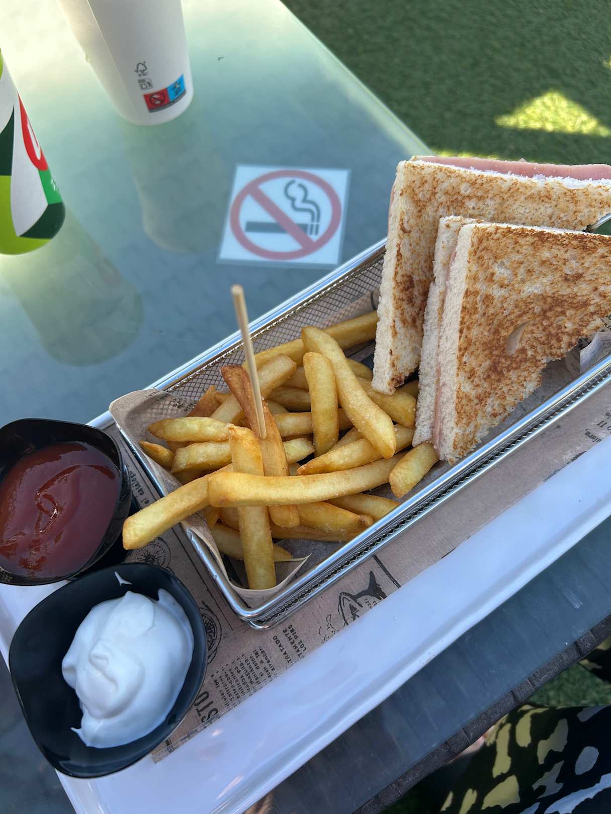Sandwich und Pommes (Mittagessen)