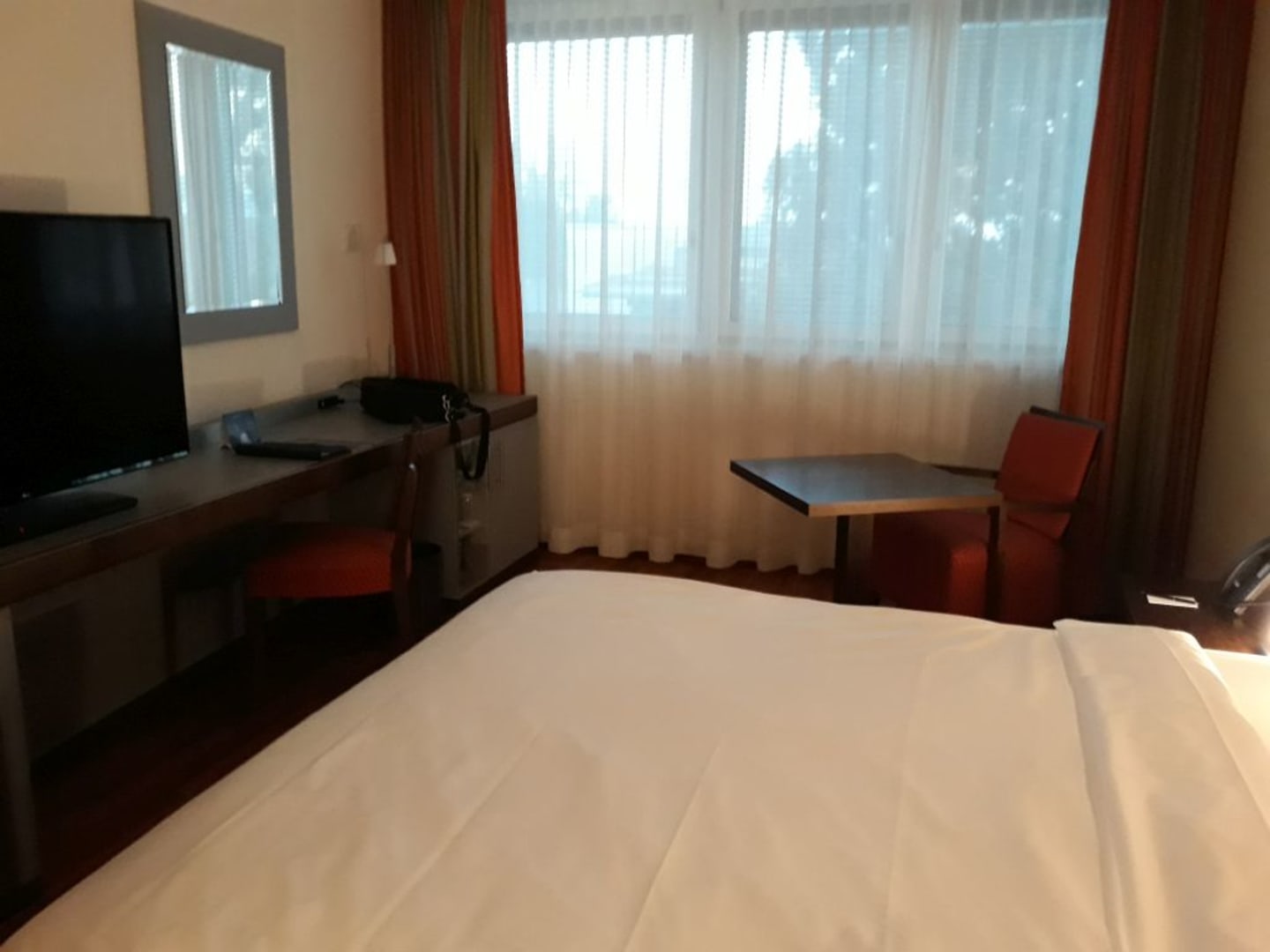Das Hotelfoto zeigt einen Tisch mit 2 Sesseln - da hatten wir wohl ein etwas abgespecktes Zimmer.