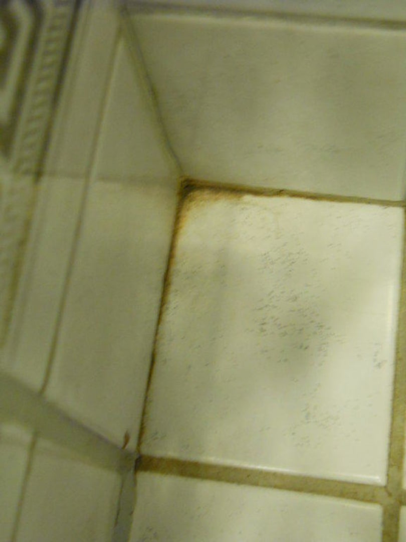 Verschmutzte Fuge im Bad.