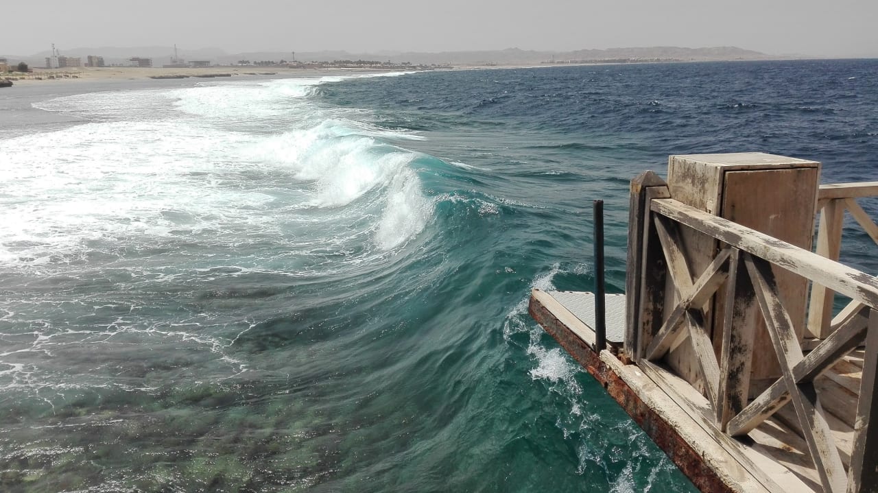Brandung am Steg beim Hausriff: Rote Flage