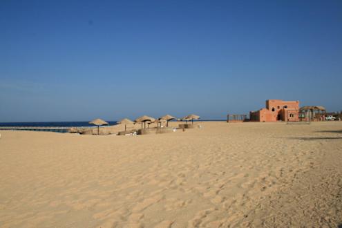 Breiter Strand Richtung Tauchbasis