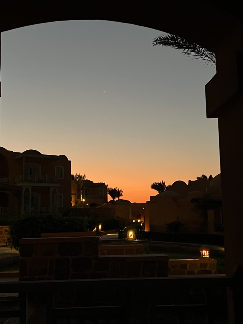 Sonnenuntergang über dem Hotel