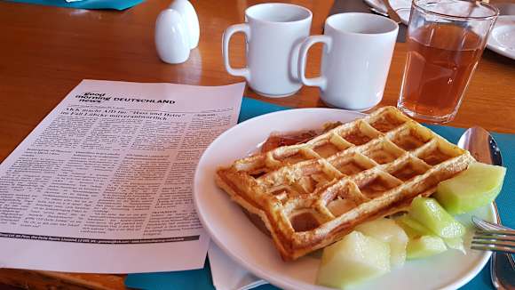 Frische Waffeln zum Frühstück und wenn man möchte gibt es auch tägliche News.