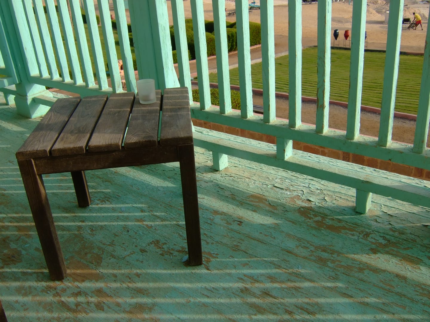 Holzbalkon fehlender Anstrich Farbe schlägt Blasen und blättert ab