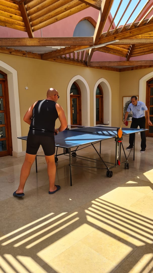 Ahmed der Gastbetreuer ist ein sehr netter Mann, trotz seines hohen Aufgabengebietes steht er einer Herausforderung zum Tischtennis gern zur Verfügung. Immer sehr bemüht den Gästen einen hohen Service zu bieten.