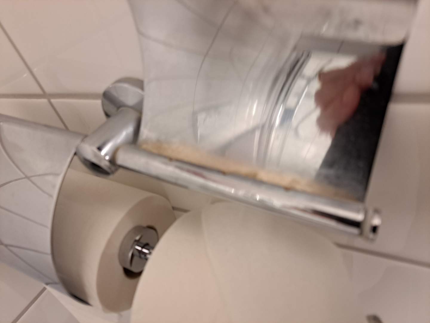 Schmutziger Deckel des WC-Rollenhalters....dieser scheint noch nie gesäubert worden zu sein :-(