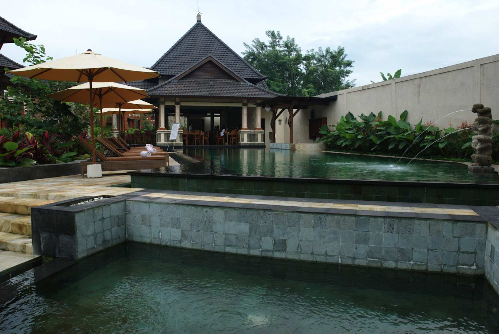 Am Pool mit Blick zum Restaurant