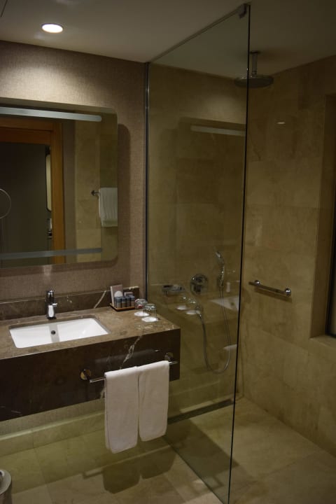 Waschtisch und Dusche im Bad