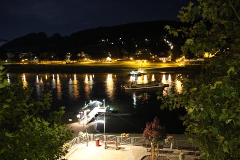 Ausblick von Zimmer 24 auf die Fähre und den Parkplatz auf der anderen Elbseite