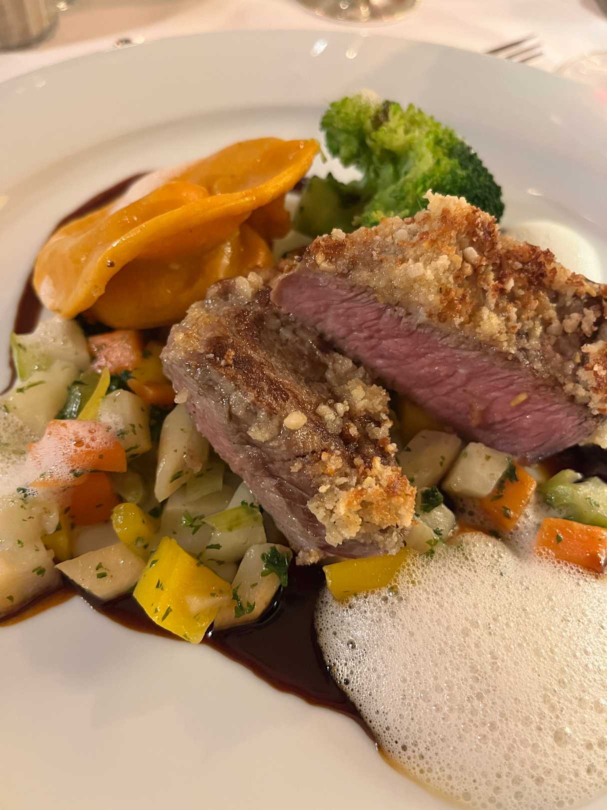 Hauptgericht des Vier-Gänge-Menüs (Lamm)