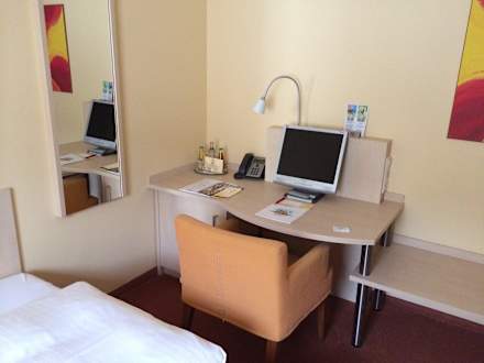 Schreibtisch mit Flat TV Rebhan's Business und Wellness Hotel