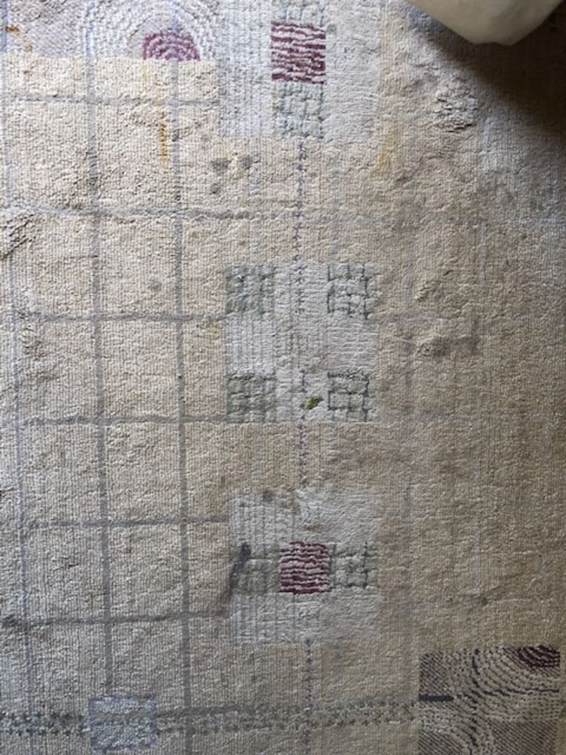 Teppich im Zimmer, voll mit Flecken.