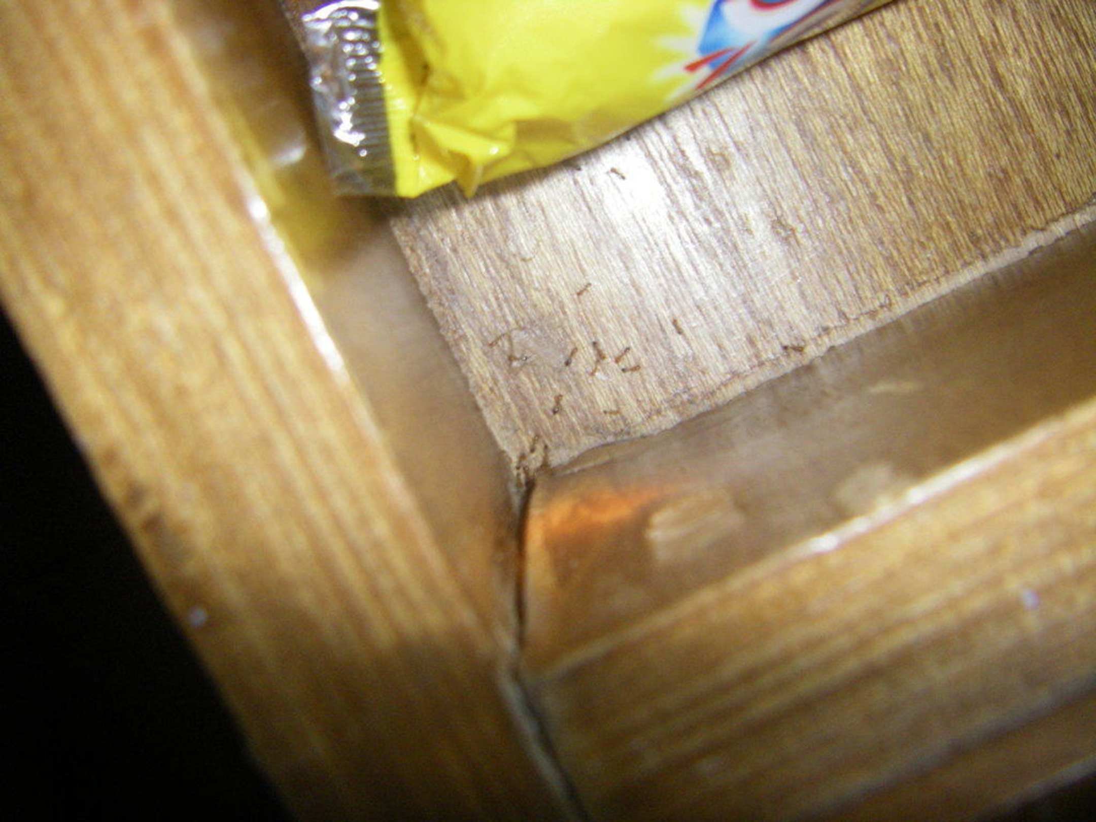 Hier laufen die Ameisen vom Schreibtisch in die Schublade zu unseren Vorräten.