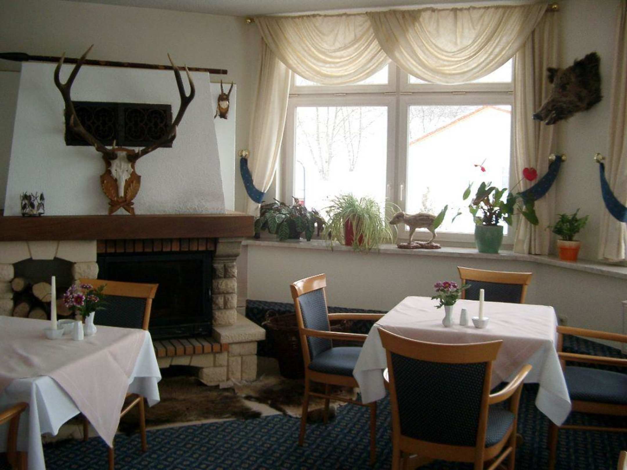 Restaurantbereich - die Kaminecke mit unserem Lieblingstisch (rechts)