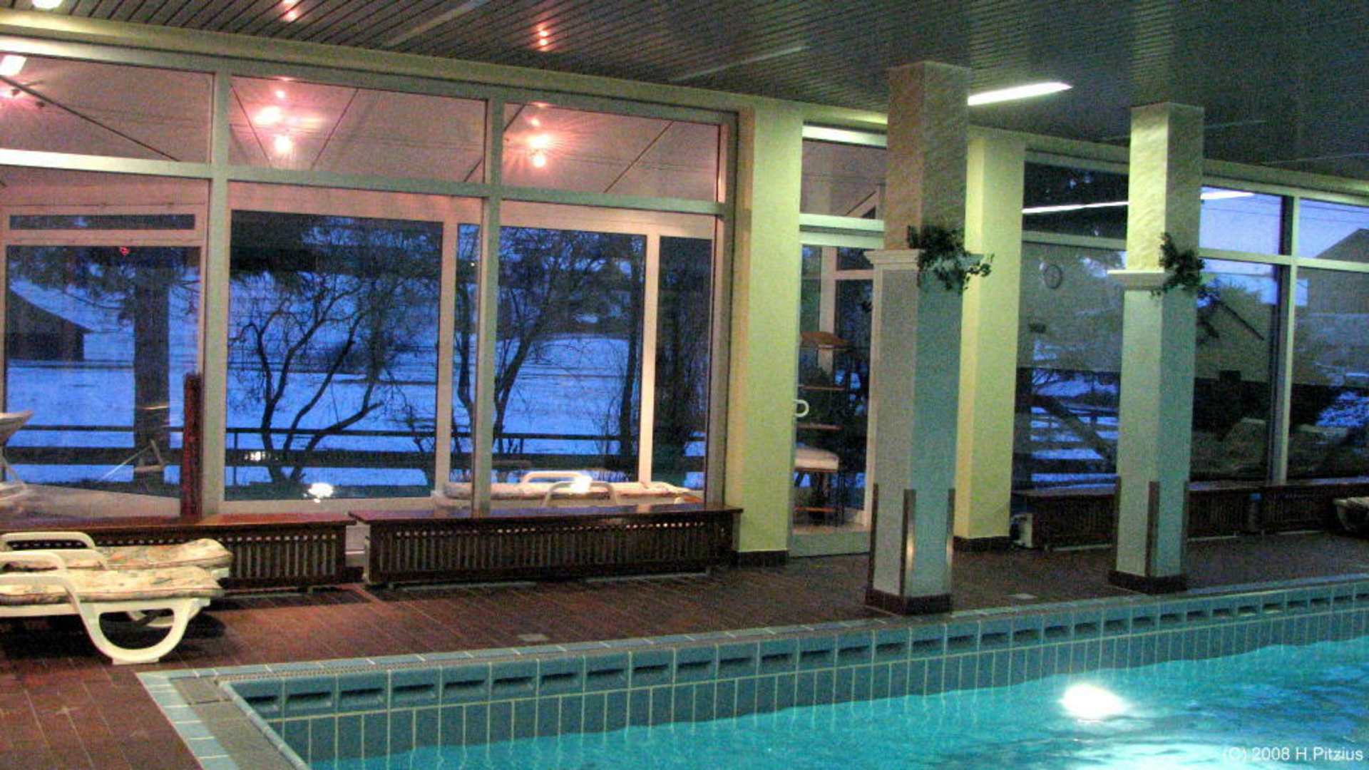 Poolmit Blick auf den Wintergarten