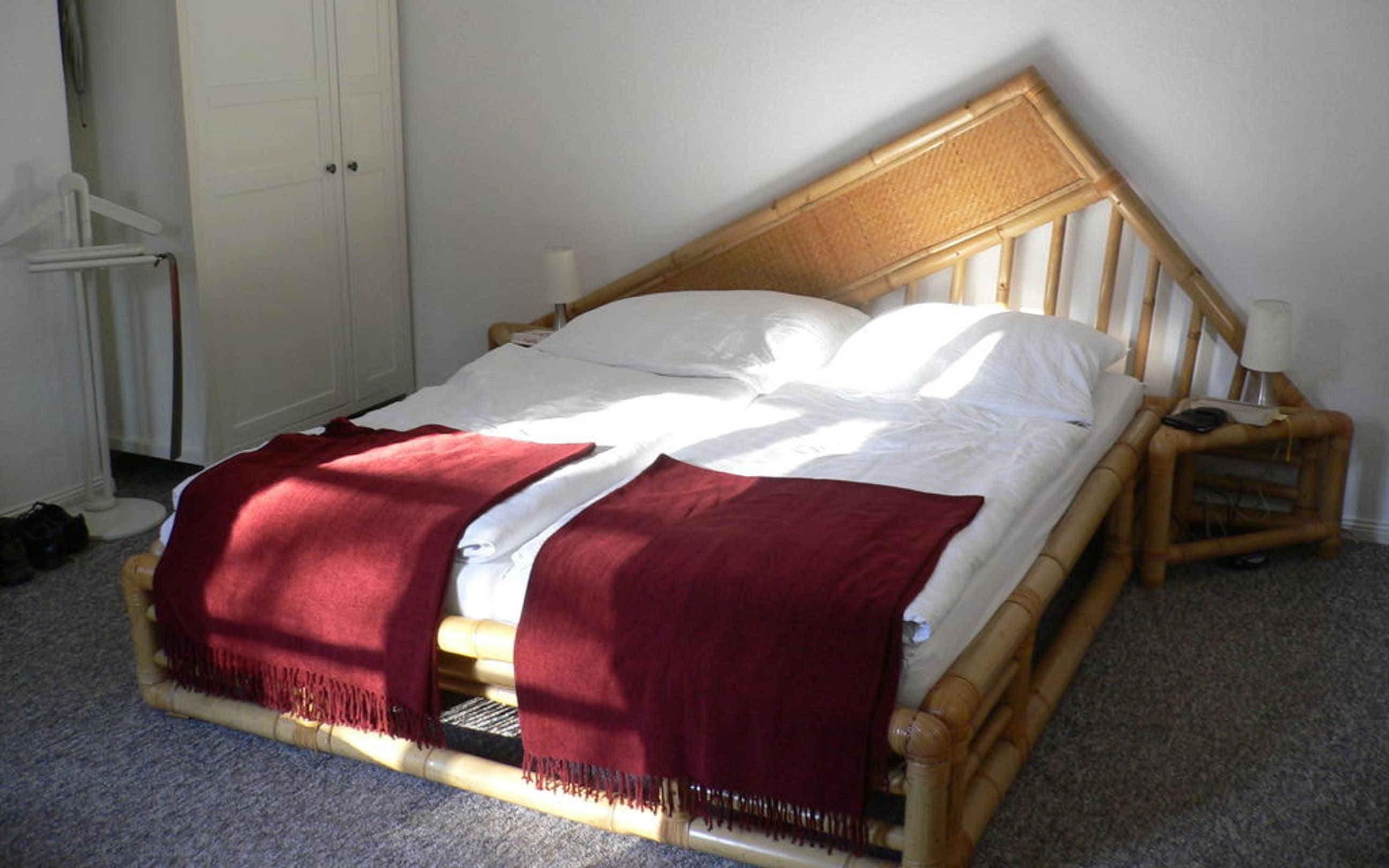 Ein herrlich bequemes Bett und im Hintergrund der Kleiderschrank.