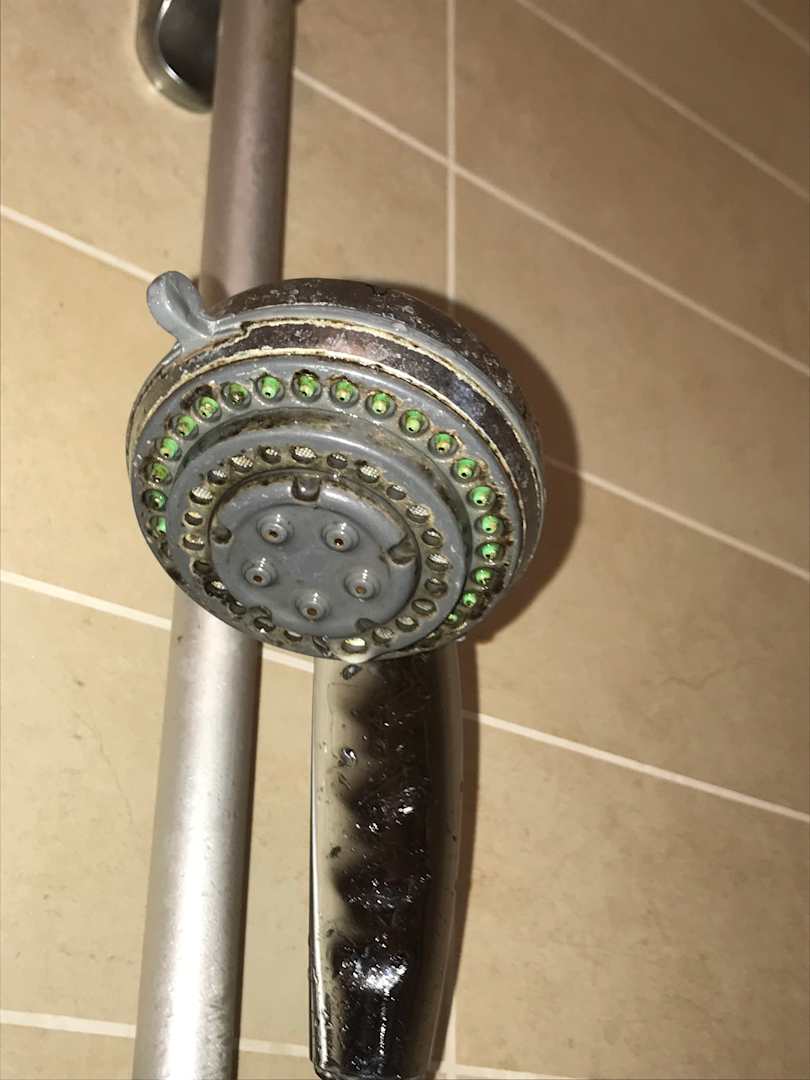 Der Duschschlauch und die Duschbrause wurden wahrscheinlich noch nie richtig geputz. Ekelhaft..