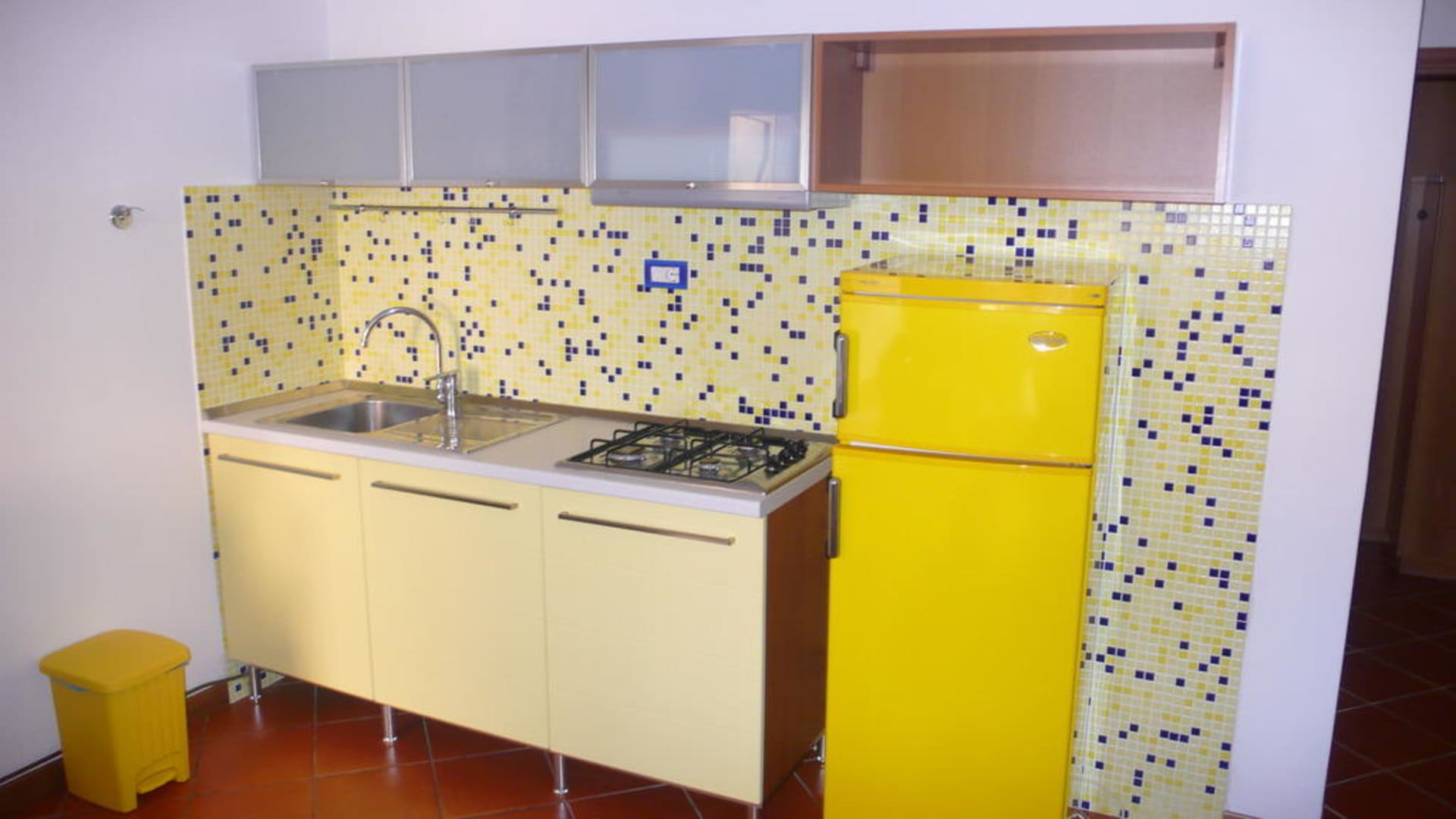 Abwasch, Gasherd, Kühlschrank mit Gefrierfach