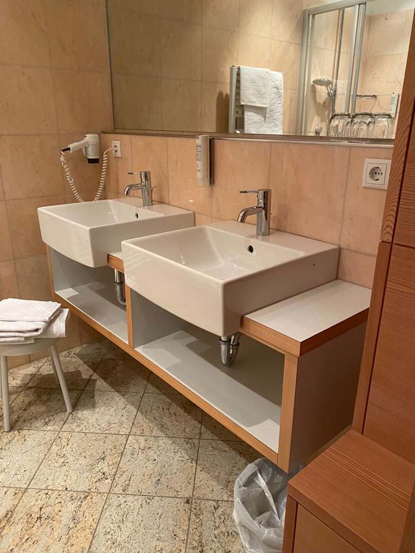 Badezimmer mit Doppelwaschbecken