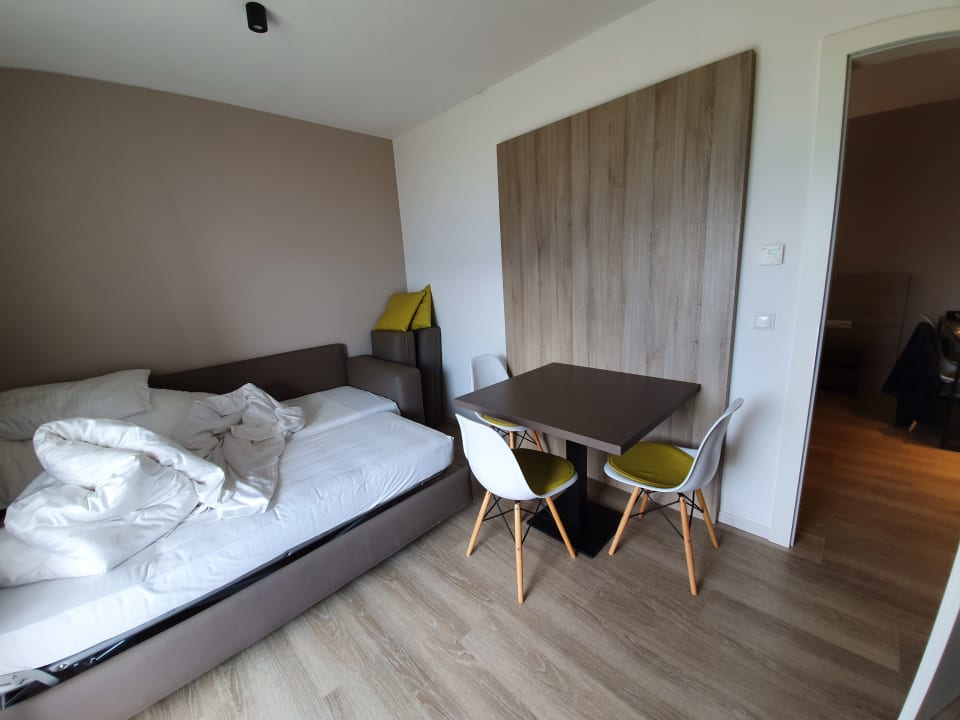 Ausgezogene Schlafcouch, Nutzung des Tisches nicht möglich
