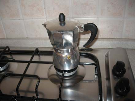 Es gibt in den Ferienwohnungen nur diesen Espressokocher, keinen Kaffeeautomat.