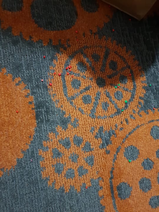 Überall verdreckter, schmutziger Teppichboden. Gesaugt wird hier nicht
