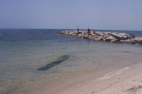 Plaża po prawej stronie portu