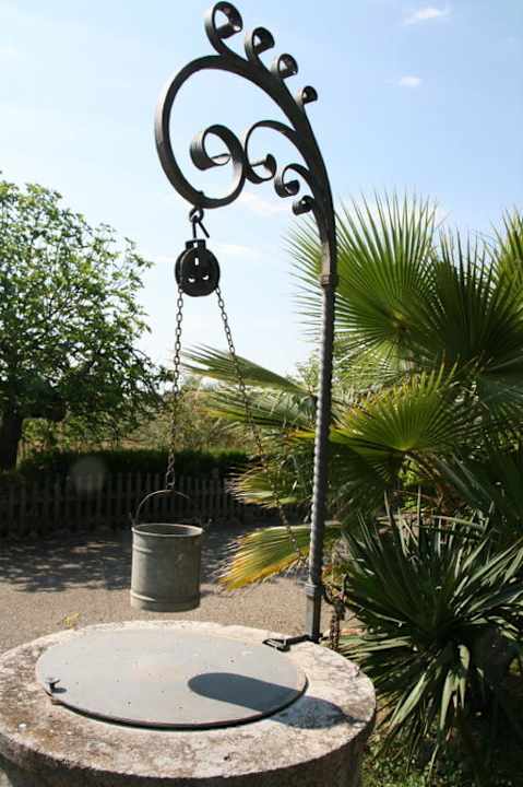 Zwei alte Brunnen stehen malerisch am Eingang zur Hotelanlage