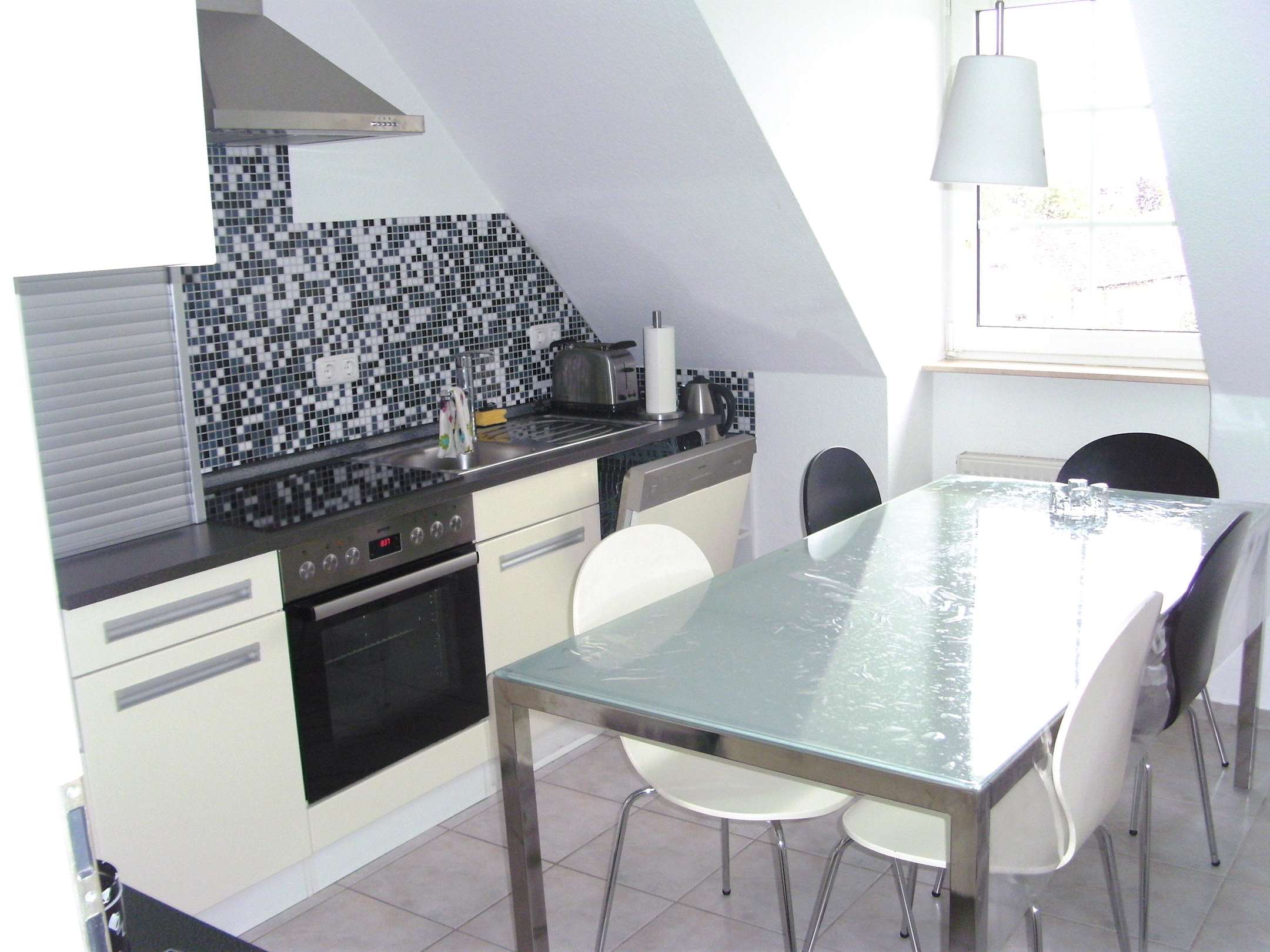 Ein Blick in die Küche mit Spülmaschine