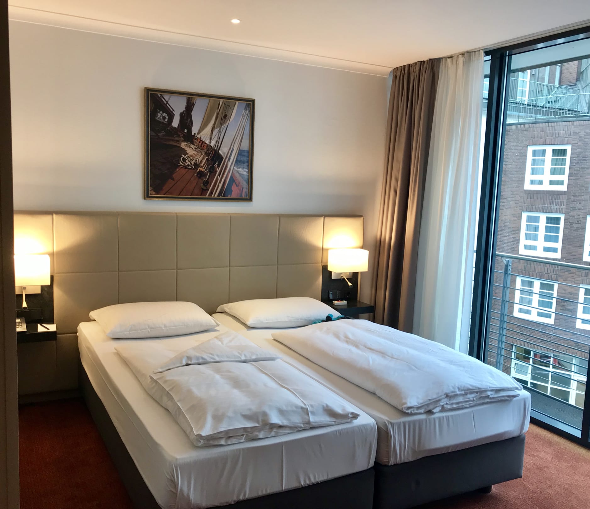Zimmer Residenz Hamburg Hafen mit Blick auf den Altbau = Hotel Hamburg Hafen
