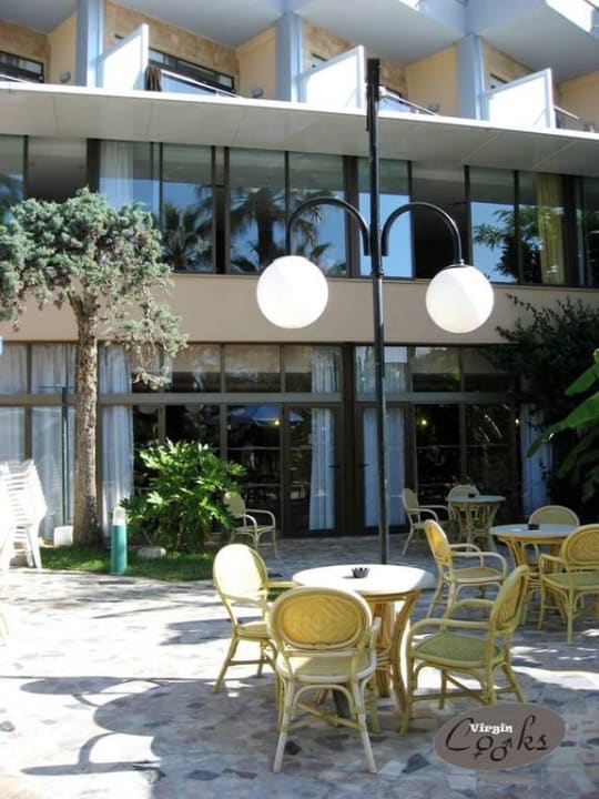 Terrasse mit Blick auf RestaurantfensterHier sieht man gut die Anordnung der Balkone, vom Nachbarn bekommt man nichts mit.