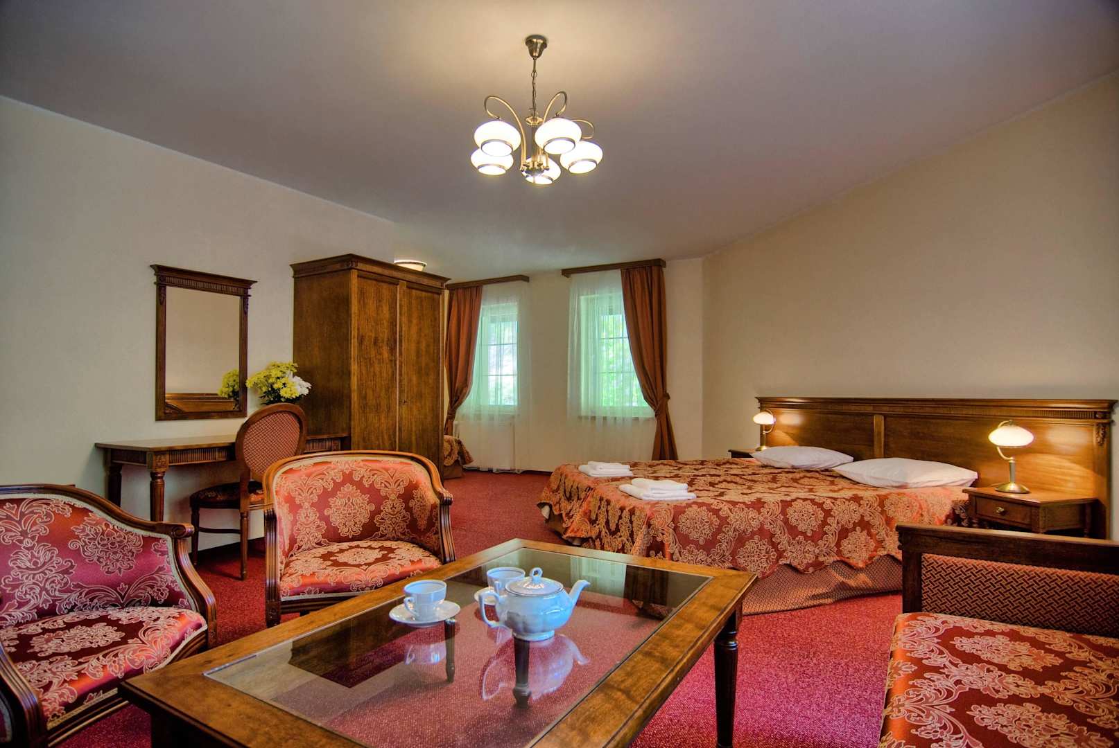 Pokój rodzinny w tonacji bordowej