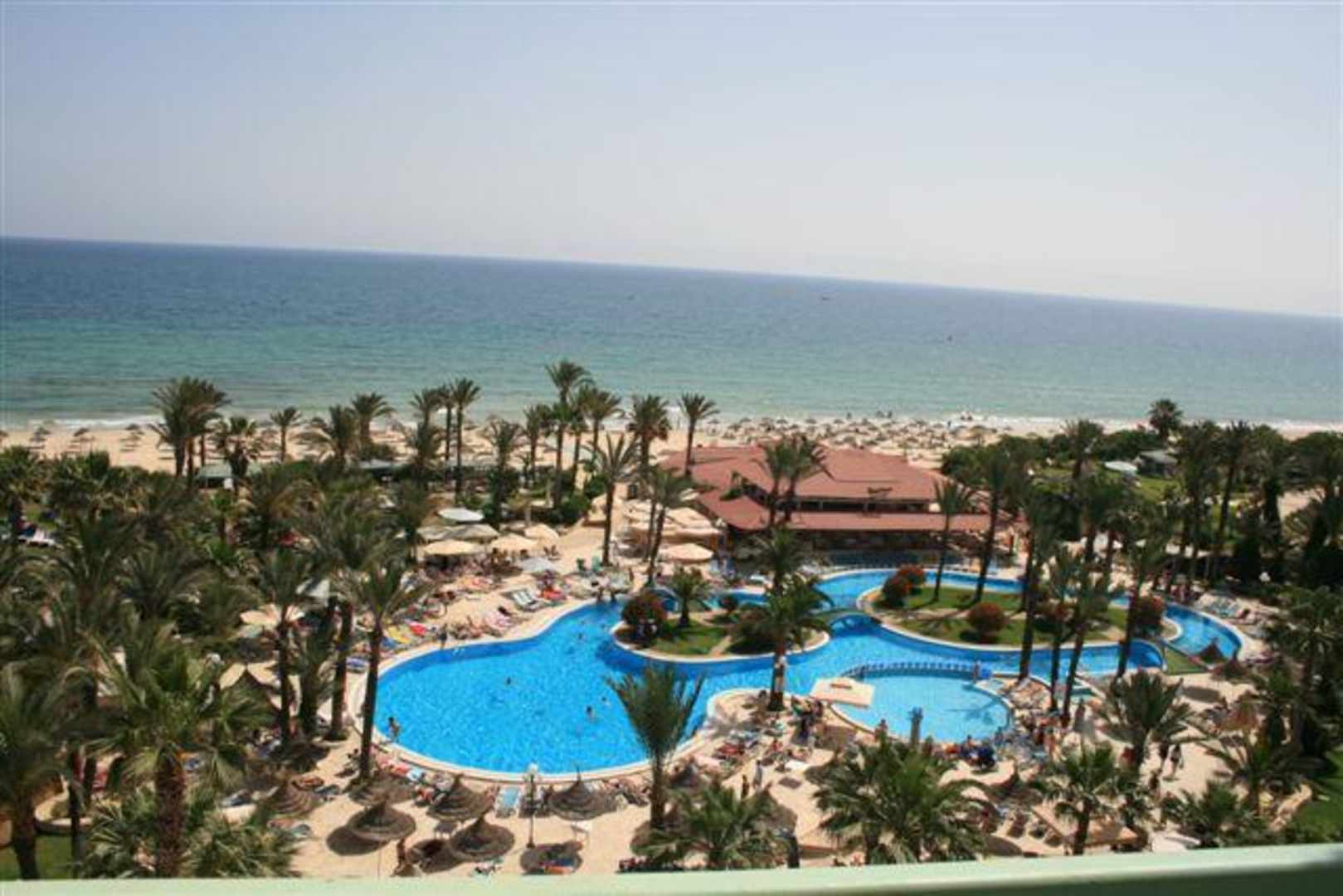 Widok z pokoju na basen i plażę