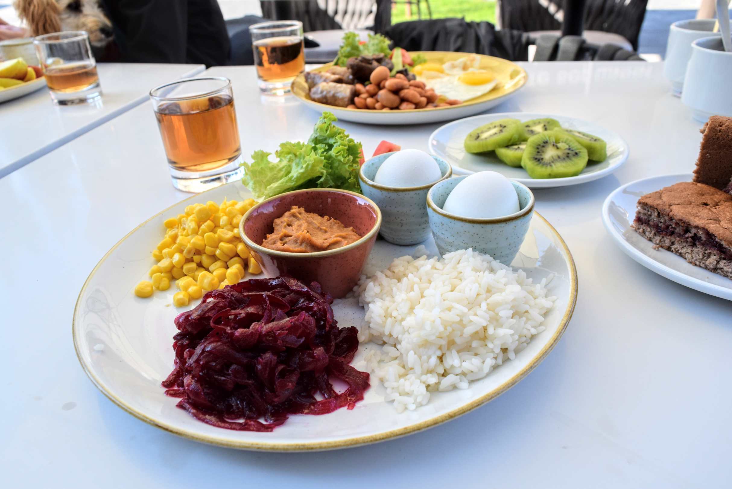 Frühstück. Laut Karte ein vegetarisches Gericht. Allerdings mit Eiern...