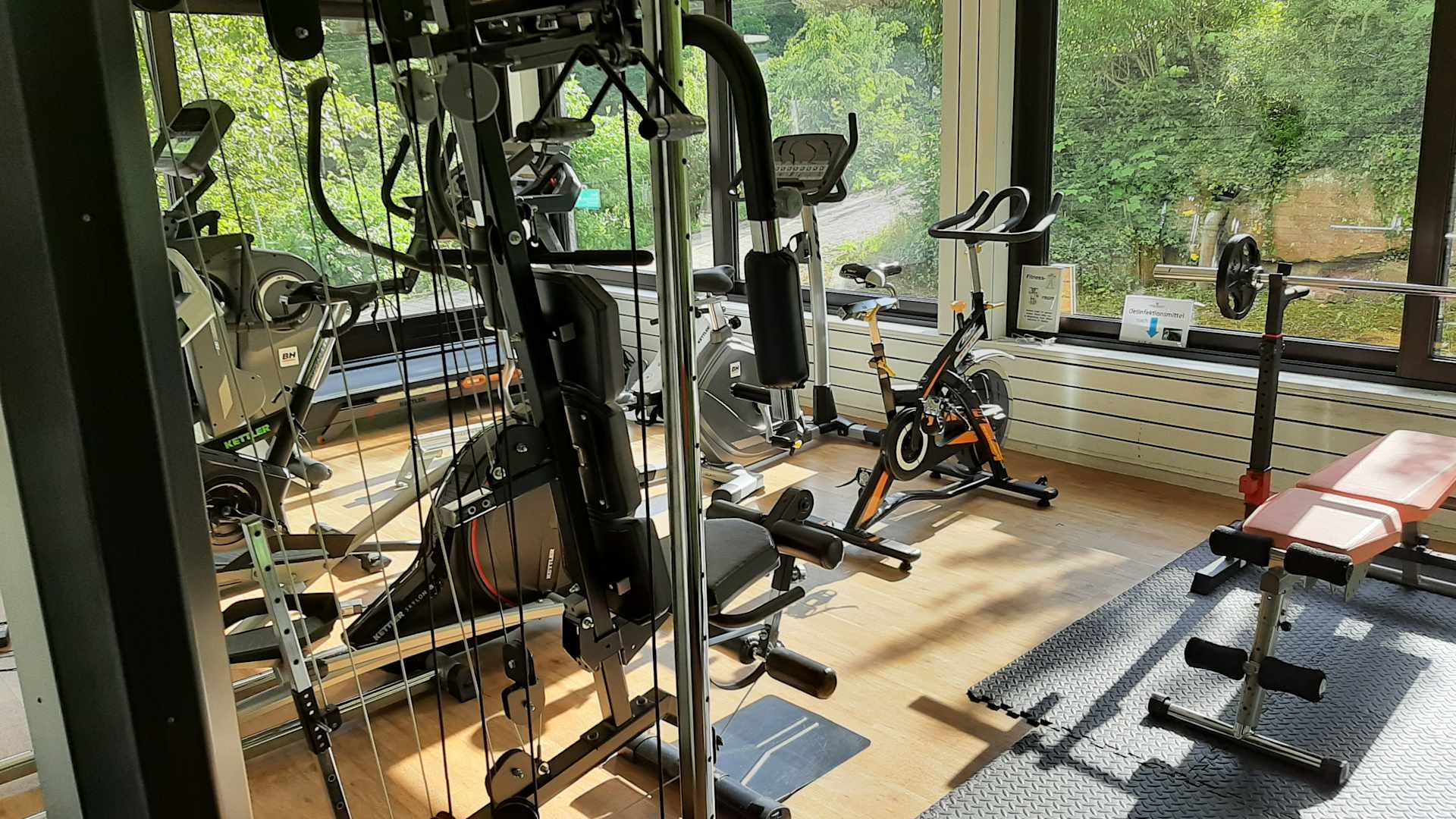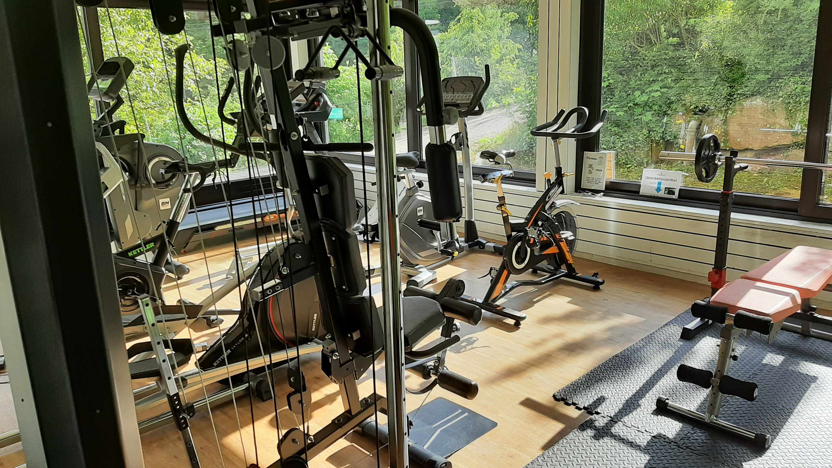 Die meisten Geräte defekt. Nach dem Hinweis an der Rezeption hiess es, der Hausmeister kommt irgendwann. Rudergerät defekt. Laufband defekt. Fahrrad ohne Display.