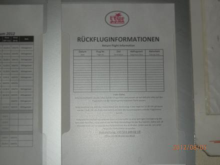 Unbeschriebene Rückfluginfo abends