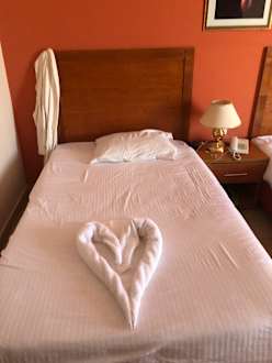 ZimmerSüße Geste aber Bad war eine reinste Katastrophe Spiegel war dreckig als wir gekommen sind. Neben der Dusche am Boden war Schimmel