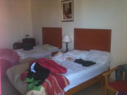 ZimmerDoppelzimmer mit Nachtkästchen in der Mitte (war festgemacht ) vielleicht wegen dem Ramadan der gerade war als wir da waren ??