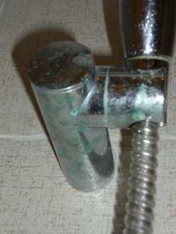 Duschkopf im Bad, voller schimmel
