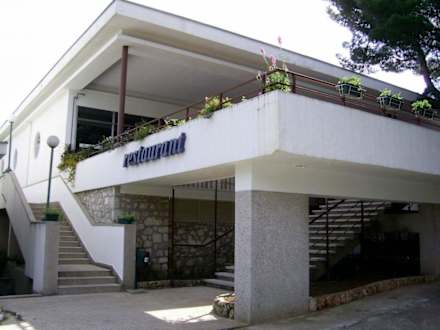 Hier zu sehen die Terasse des Hotels. Dahinter befindet sich der Speiseraum