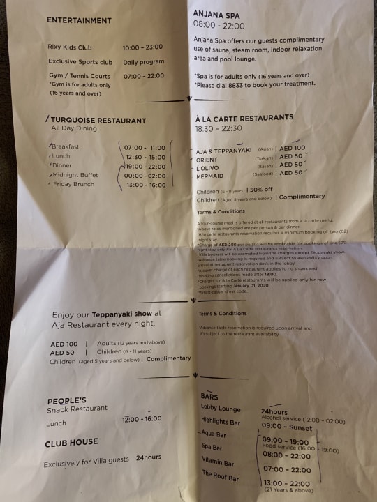 Restaurantzeiten + Extrakosten
