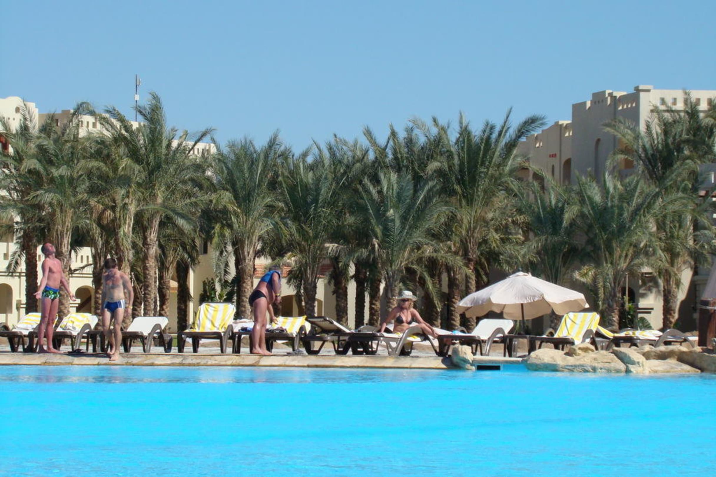 Częśc basenu i lasek palmowy