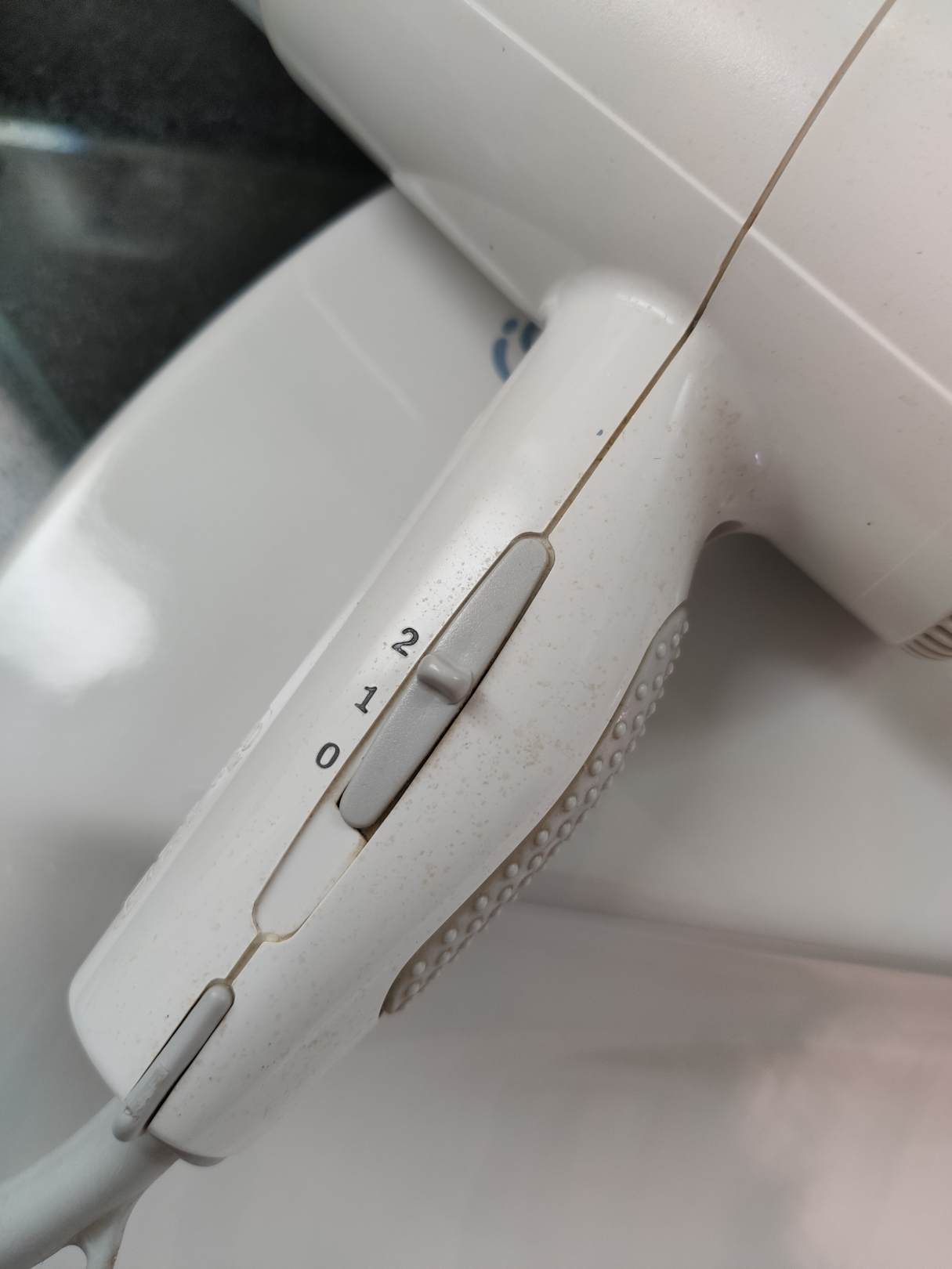Fön in Zimmer 445 aus dem letzten Jahrtausend - mit alten Dreckablagerungen aus eben diesem